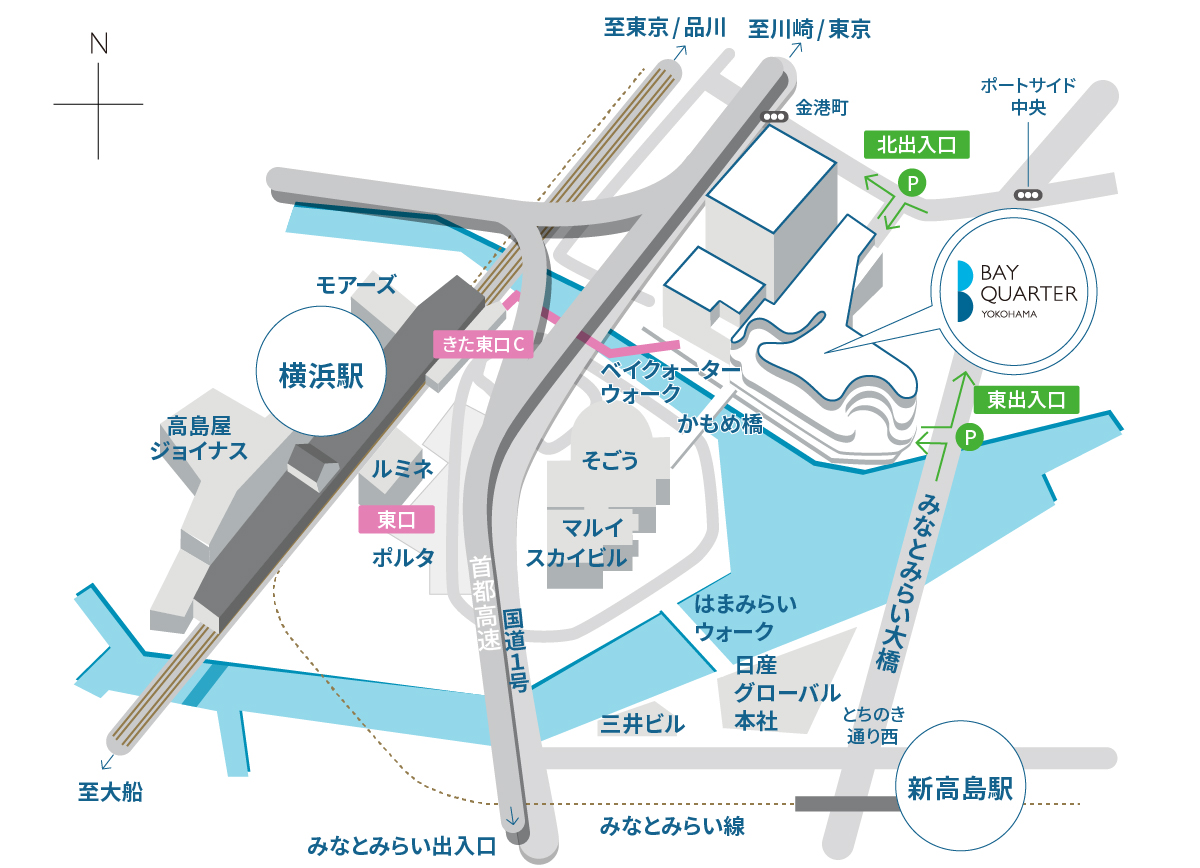 横浜ベイクォーターへは、横浜駅「きた東口」からのお越しが便利です