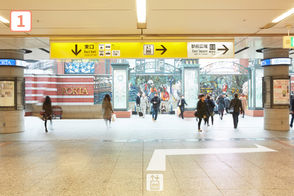 横浜駅東口からポルタ、そごう2F経由で徒歩7分
