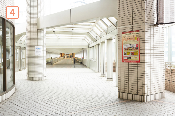 2Fかもめ橋口を出て左に進み、「かもめ橋」という歩道橋を渡ります。