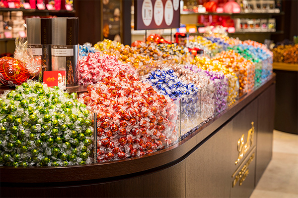なめらかな⼝どけで一番人気の「リンドール」を、量り売りでお買い求めいただける直営店限定の「PICK&MIX(ピック&ミックス)」のほか、ご用途に合わせたギフト商品やチョコレート専門店ならではの味わいのショコラドリンクなどのカフェメニューもお楽しみいただけます。
