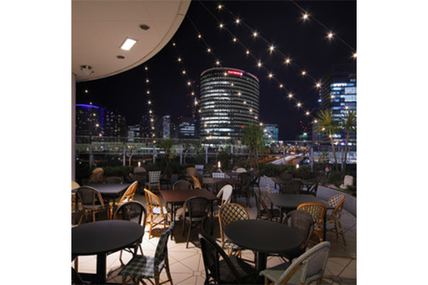 横浜ベイエリアの風景が目の前に広がるテラスではオープンエアーな環境で、開放感に浸りながらお食事をお楽しみください。